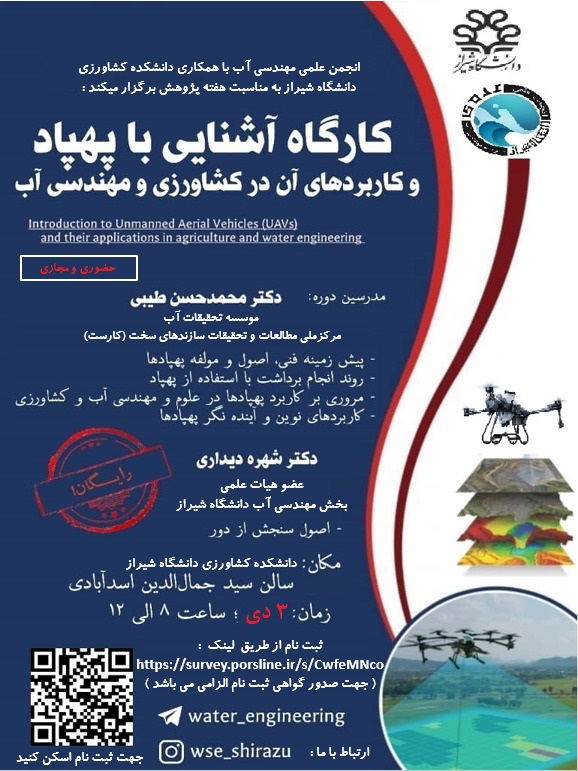 دوره آموزشی : کارگاه آشنایی با پهباد و کاربردهای آن در کشاورزی و مهندسی آب