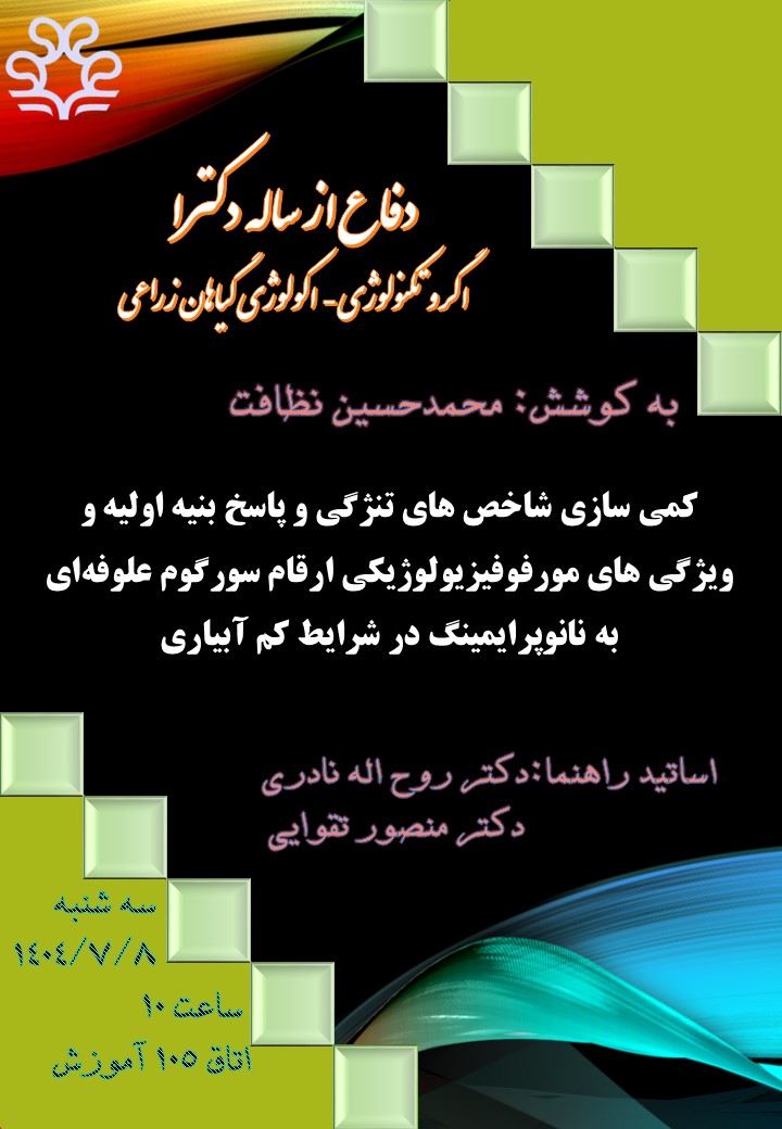 جلسه دفاع از رساله دکتری: بخش تولید و ژنتیک گیاهی: به کوشش: محمدحسین نظافت