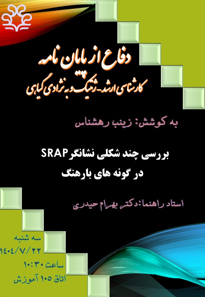 جلسه دفاع از پایان نامه کارشناسی ارشد: بخش تولید و ژنتیک گیاهی: به کوشش: زینب رهشناس
