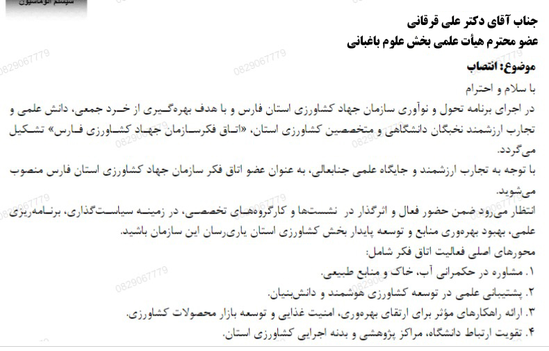 *انتصاب اتاق فکر جهاد کشاورزی فارس*
