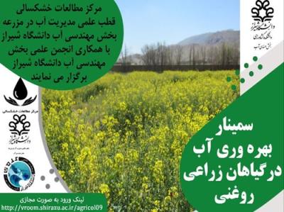 مرکز مطالعات خشکسالی و بخش مهندسی آب به مناسبت هفته پژوهش برگزار می کنند: سمینار بهره وری آب در گیاهان زراعی روغنی