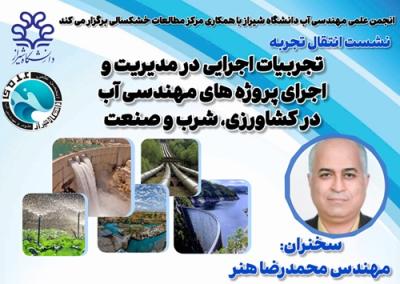 انجمن علمی مهندسی آب دانشگاه شیراز با همکاری مرکز مطالعات خشکسالی برگزار می کند:
