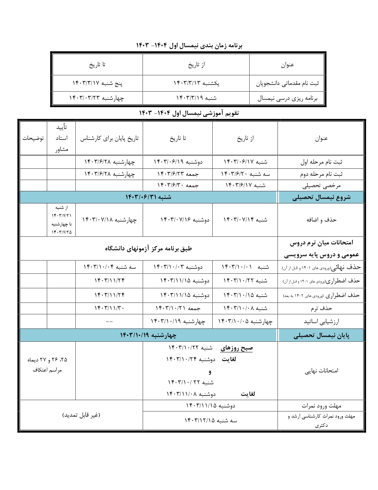 براساس ماده 22 آیین نامه و مقررات آموزشی دانشجویان کارشناسی ارشد ناپیوسته، دانشجو موظف است تا قبل از پایان نیمسال سوم تحصیلی، موضوع پایان نامه خود را با نظر استاد راهنما و تأیید شورای بخش مربوطه انتخاب کرده و به تصویب بخش، دانشکده و دانشگاه برساند.